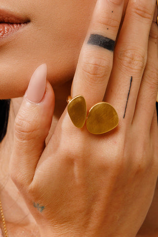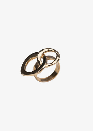 Rea Argento Dorato | Anello con cerchi irregolari in argento liscio e martellato