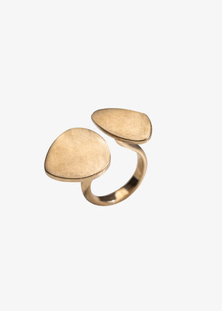 Parnaso Argento Dorato | Anello aperto con elementi geometrici in argento graffiato